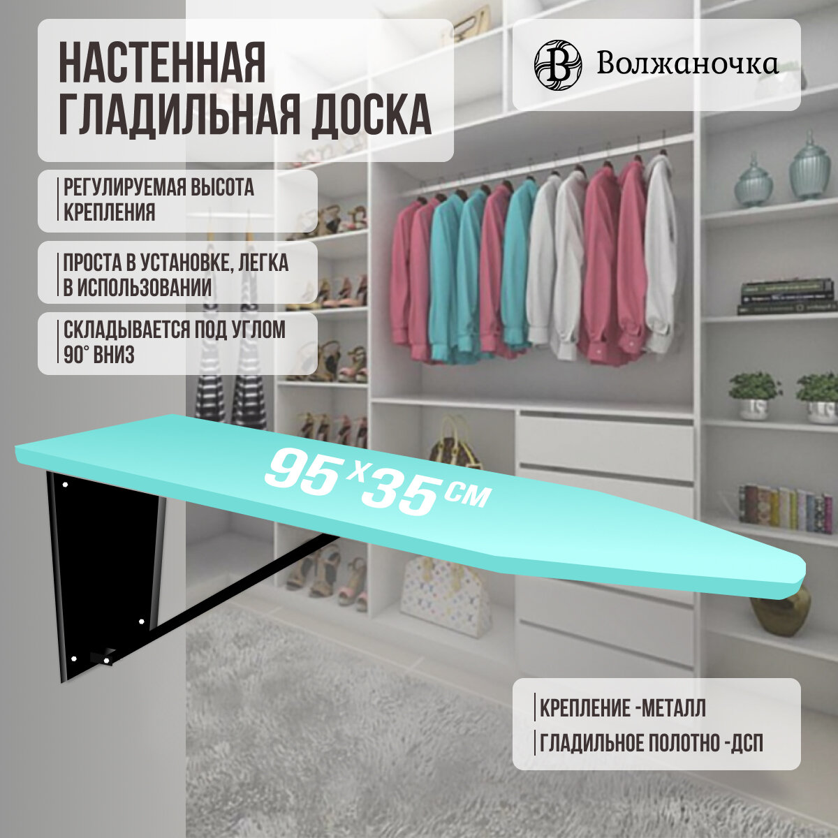 Гладильная доска настенная встраиваемая в шкаф, бирюзовый, 95х35 информация: