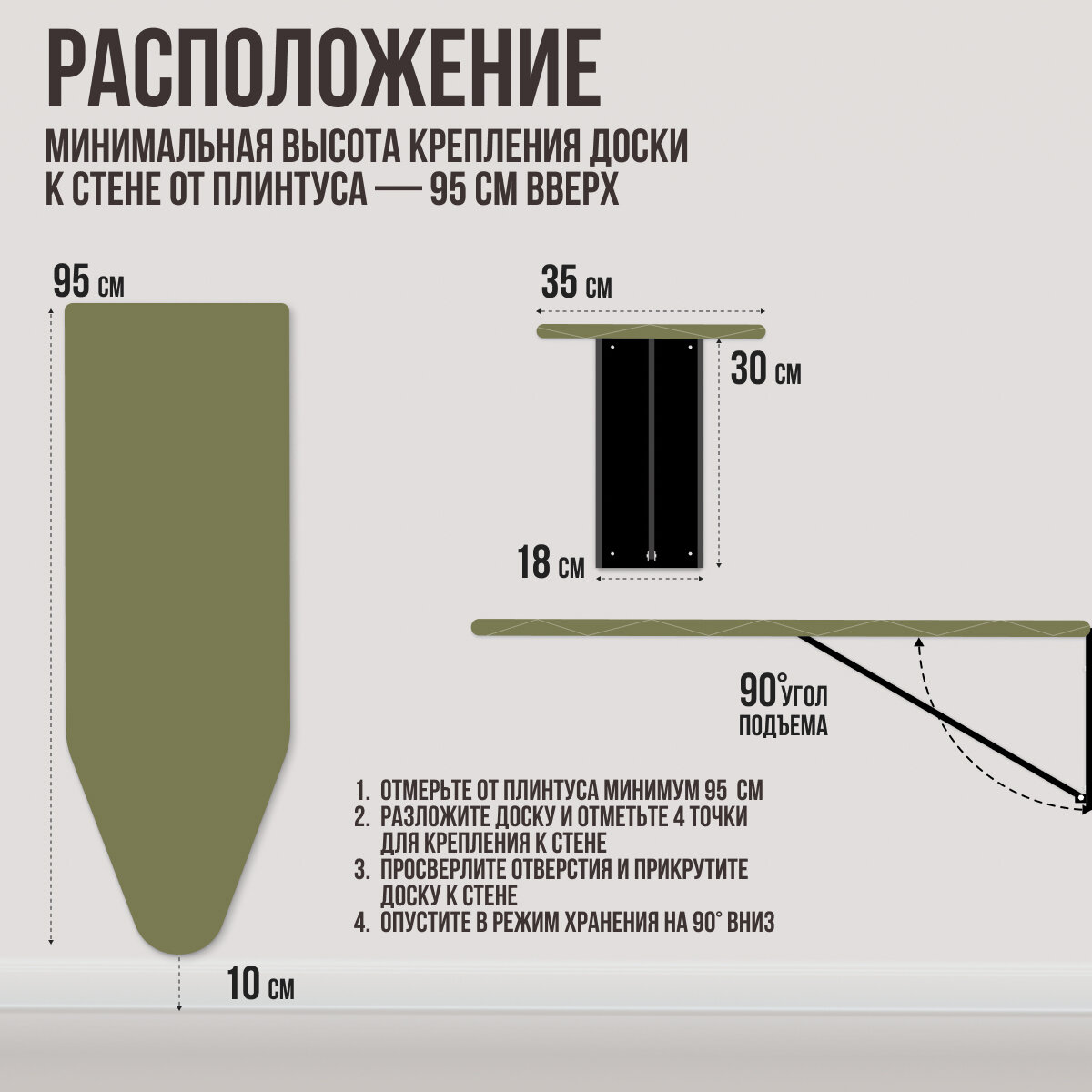 10 цен на Гладильная доска настенная с подрукавником и электроудлинителем, оливковый, 95 х 35см