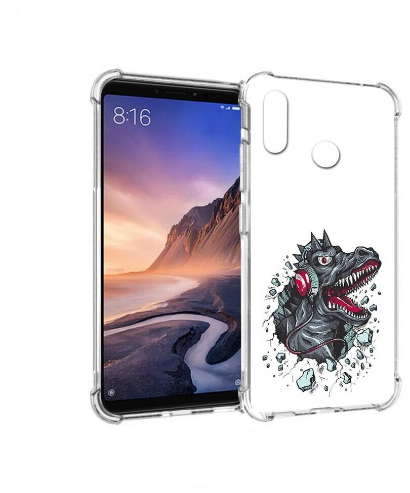 Отзывы на Чехол задняя-панель-накладка-бампер MyPads Нарисованный динозавр в наушниках для Xiaomi Mi Max 3 противоударный