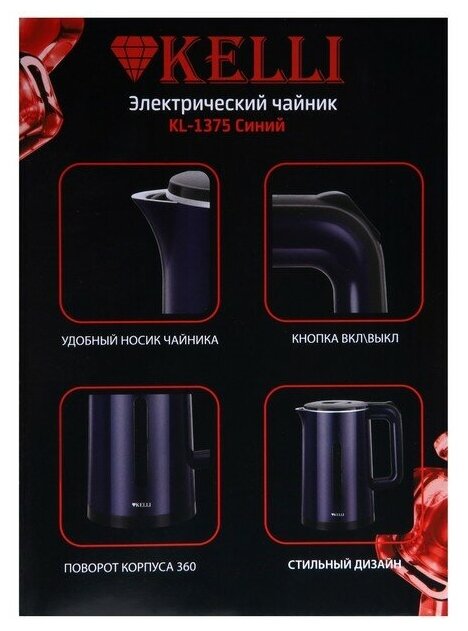 Чайник электрический Kelli KL-1375B 1,8 л синий информация: