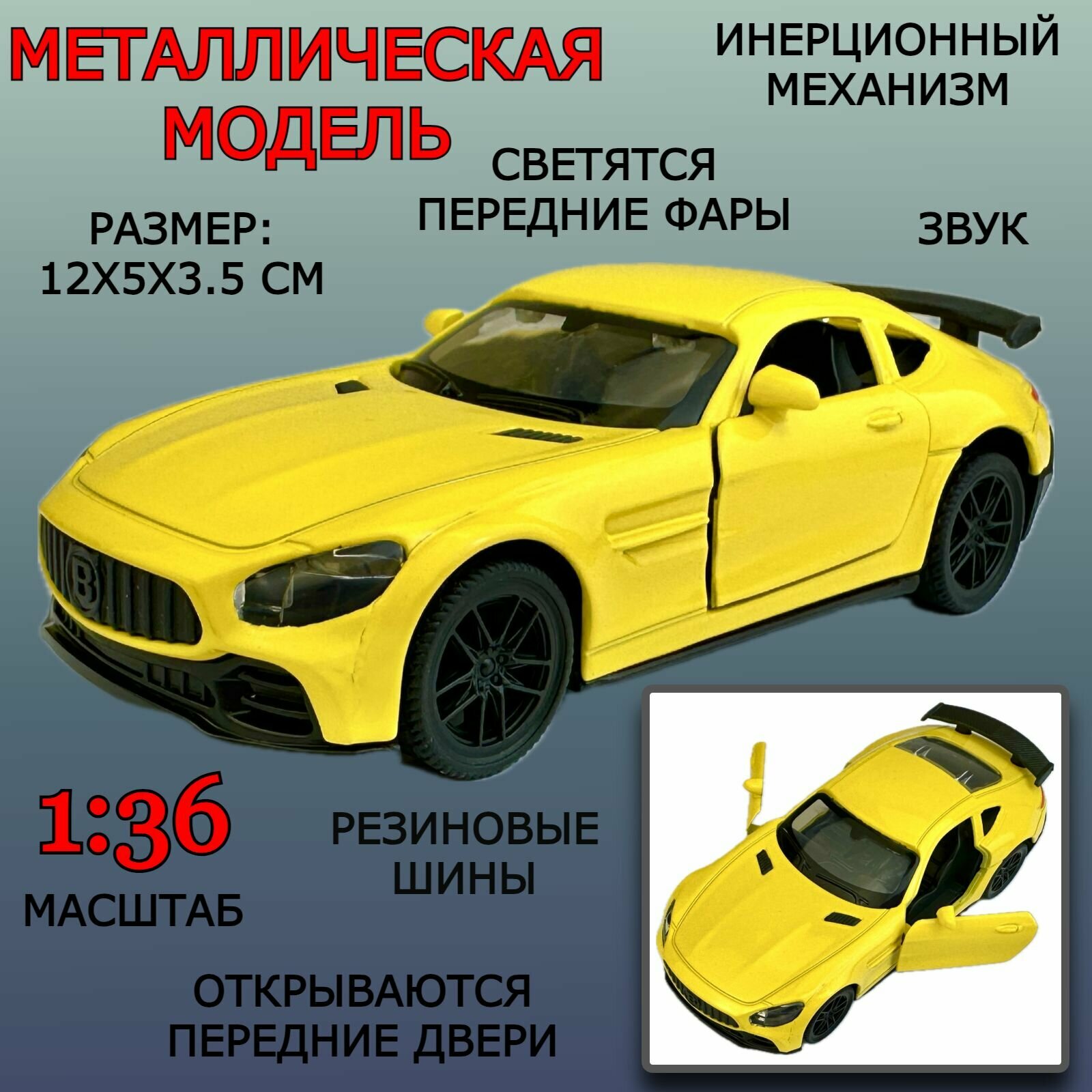 Металлическая модель машины P8-201 Die Cast Model, 1:36, инерционная машинка, открываются двери, звук мотора, светятся фары, 12х5х3.5 см информация: