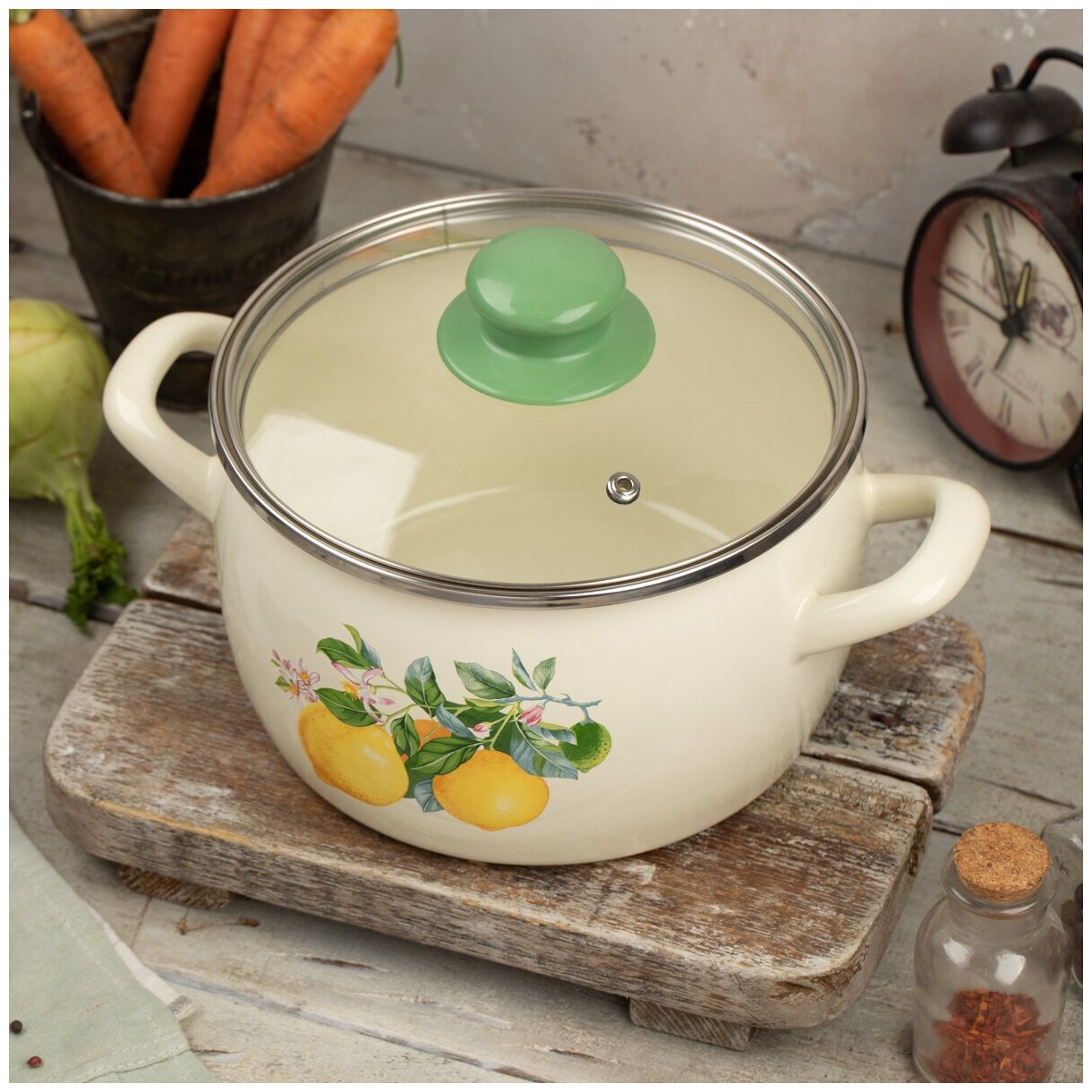 Кастрюля эмалированная Metrot Лимоны, с крышкой, 3,1 л информация: