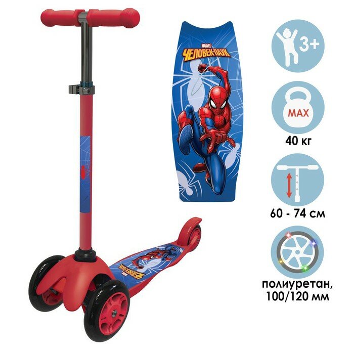 10 цен на MARVEL Самокат "Человек-Паук", колеса 120 мм, цвет красный