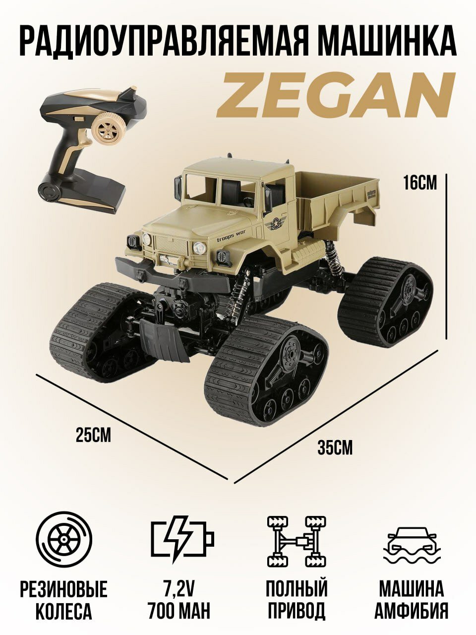 Zegan Радиоуправляемый гусеничный краулер-амфибия Zegan 4WD RTR