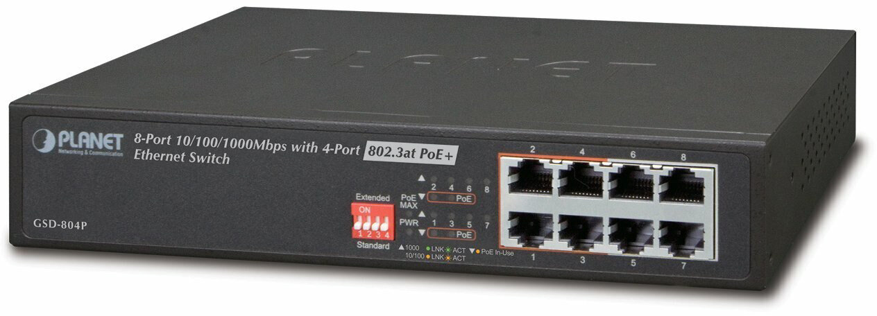 Отзывы на Planet коммутатор/ PLANET 10" 8-Port 10/100/1000 Gigabit Ethernet Switch with 4-Port 802.3at PoE+ Injector (60W PoE Budget, 200m Extend mode and fanless)