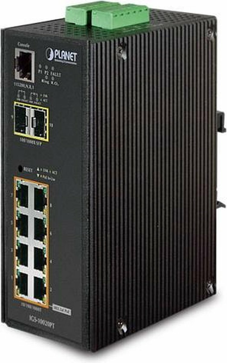 10 цен на Planet коммутатор/ PLANET IP30 L2+ SNMP Manageable 8-Port Gigabit POE(Af) Switch + 2-Port Gigabit SFP Industrial Switch (-40 to 75 C), ERPS Ring Supported, 1588