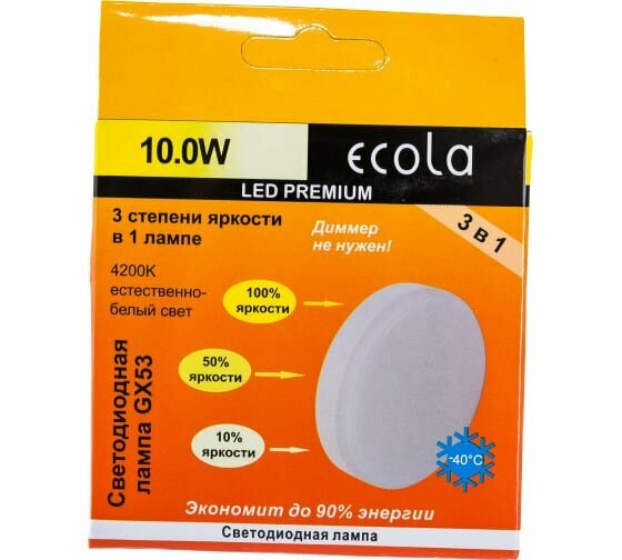 10 цен на Ecola GX53 св/д 3 ступени димм. 10W 6000K 6K (шаг 100%/50%/10%) 27x75 матов. Premium T5CD10ELC