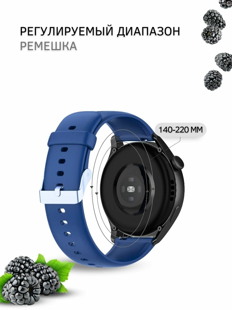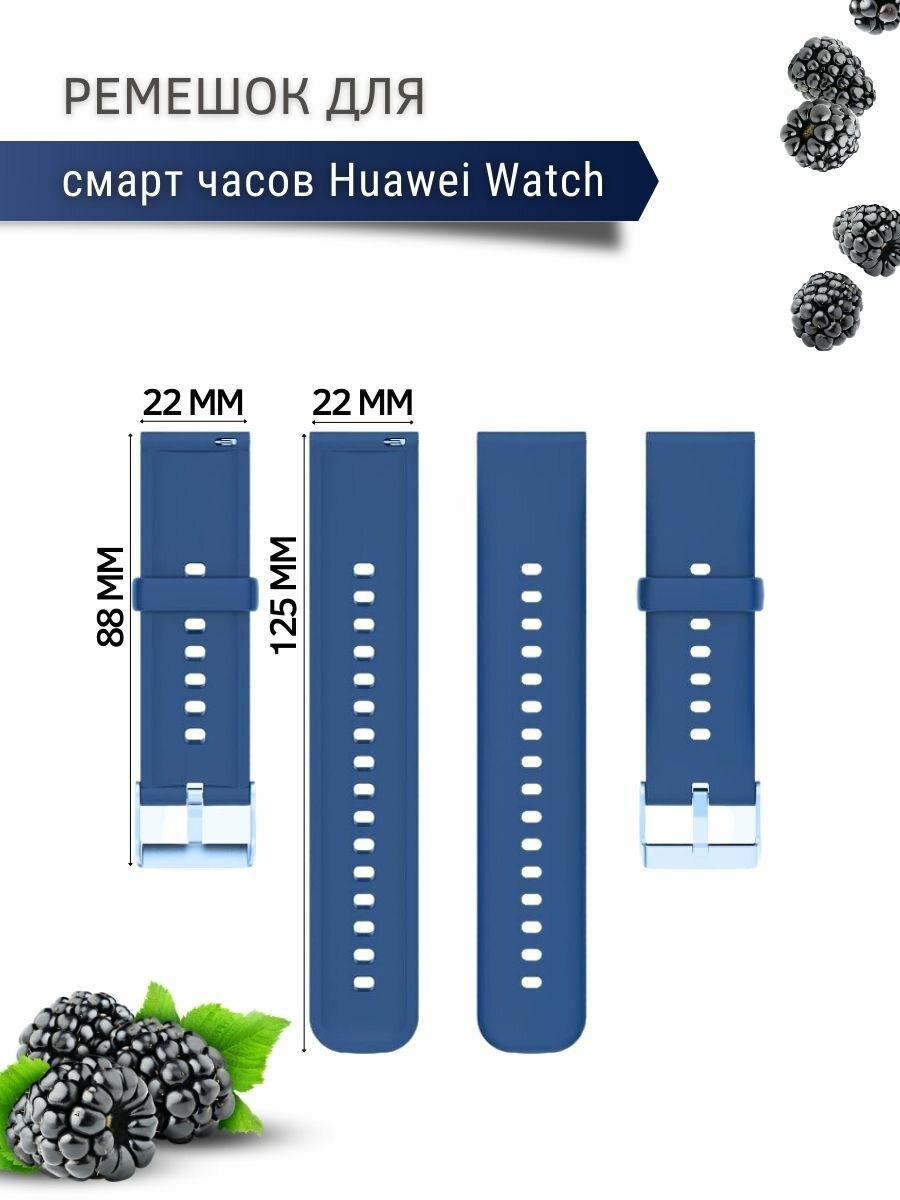 Силиконовый ремешок для Huawei Watch 3 / 3Pro / GT 46mm / GT2 46 mm / GT2 Pro / GT 2E 46mm (серебристая застежка) 22 мм, темно-синий информация: