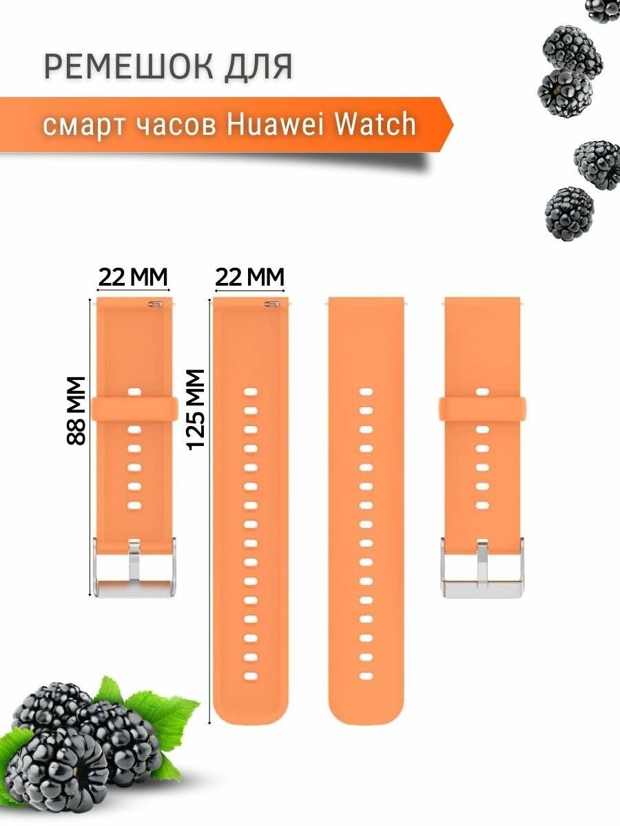 Силиконовый ремешок для Huawei Watch 3 / 3Pro / GT 46mm / GT2 46 mm / GT2 Pro / GT 2E 46mm (серебристая застежка) 22 мм, оранжевый информация: