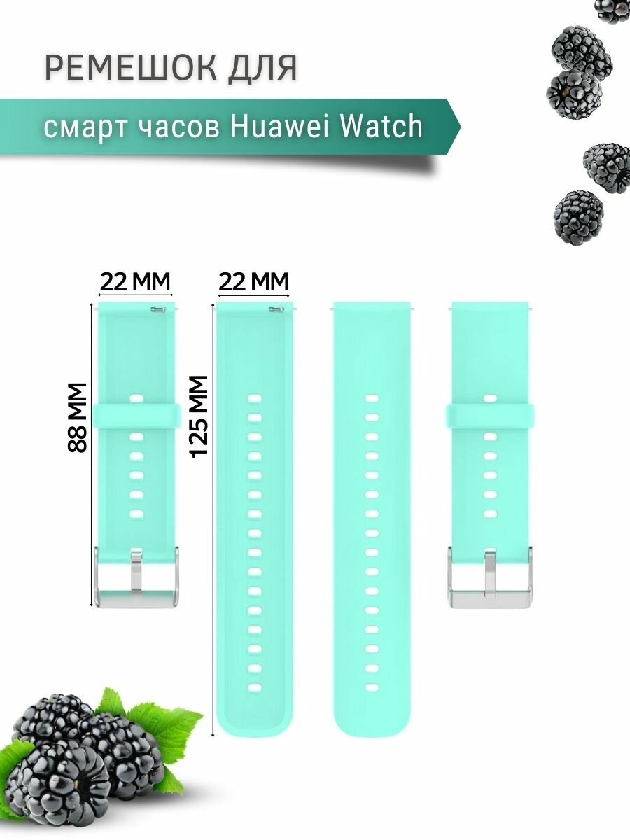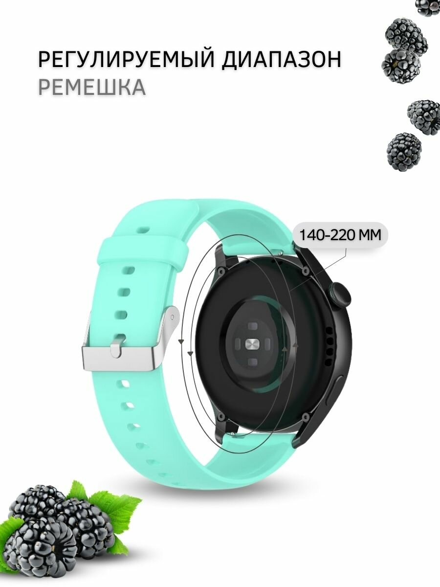 Силиконовый ремешок для Huawei Watch 3 / 3Pro / GT 46mm / GT2 46 mm / GT2 Pro / GT 2E 46mm (серебристая застежка) 22 мм, бирюзовый информация:
