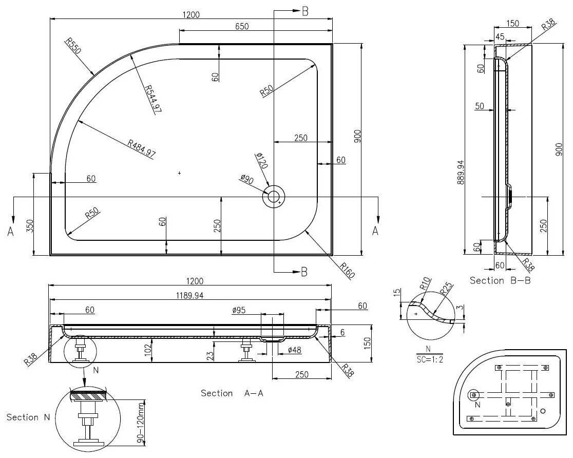 Душевой поддон Azario P1912 R/L 900x1200x150 к Ontario 1231 900