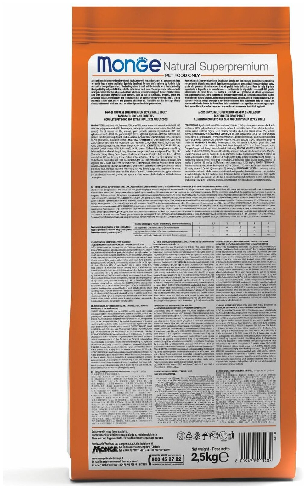 Сухой корм для собак Monge Speciality line, при аллергии, ягненок, с рисом, с картофелем (для мелких пород)