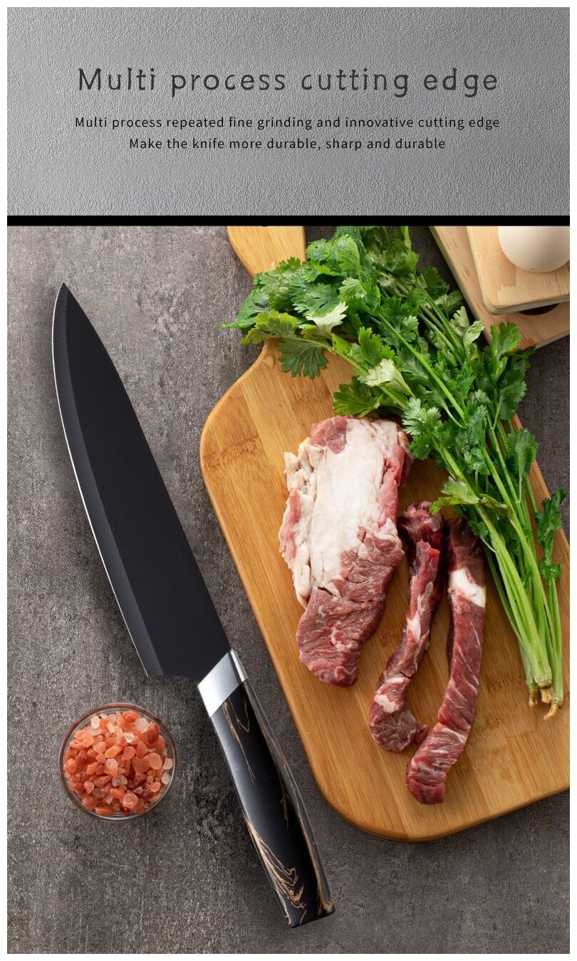 | Типы ножей в наборе | нож для овощей, нож для пиццы, нож для сыра, нож для томатов, нож для хлеба, разделочный нож, универсальный нож, шеф-нож |