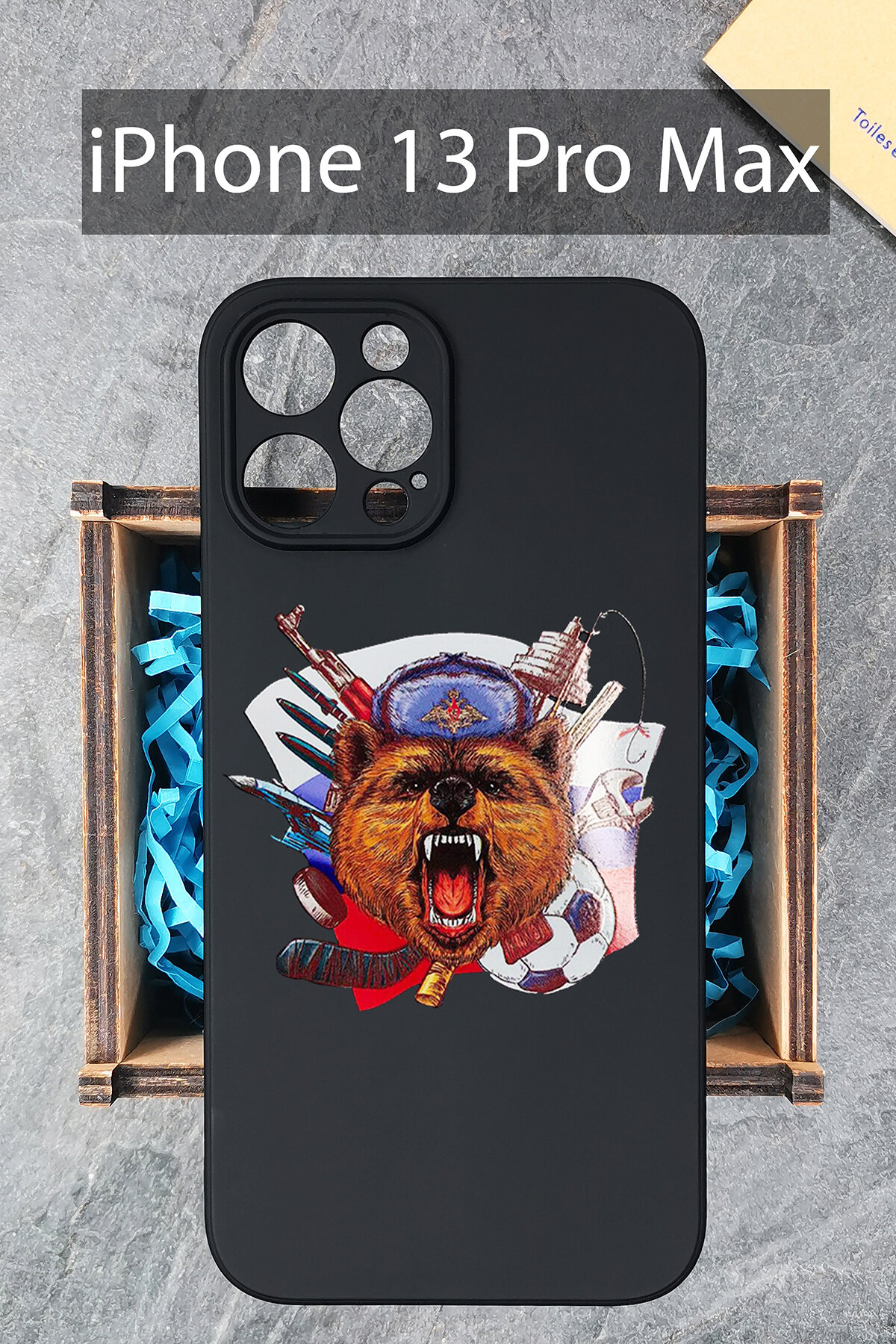 10 цен на Силиконовый чехол Русский Медведь с флагом для iPhone 13 Pro Max / на Айфон 13 Про Мах
