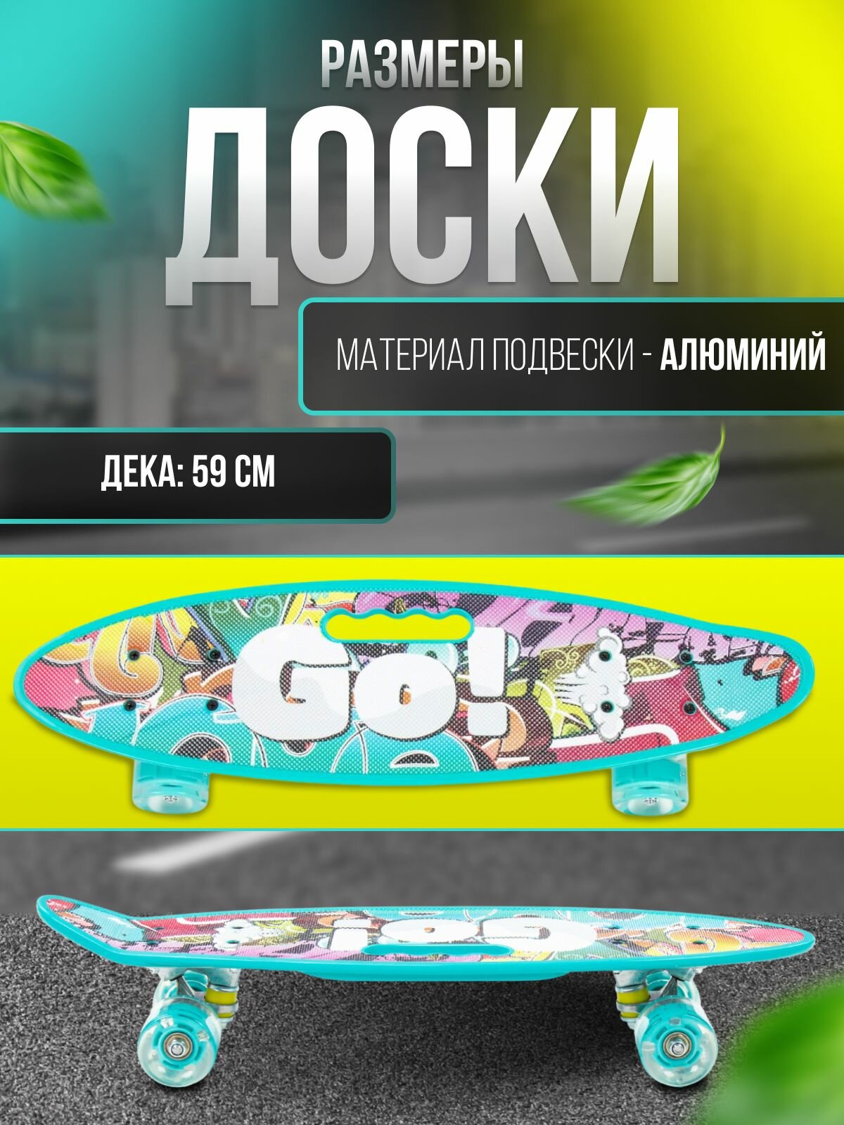 POLESIE/Доска роликовая (59 см) (бирюзовая) с наклейкой и бирюзовыми колёсами информация: