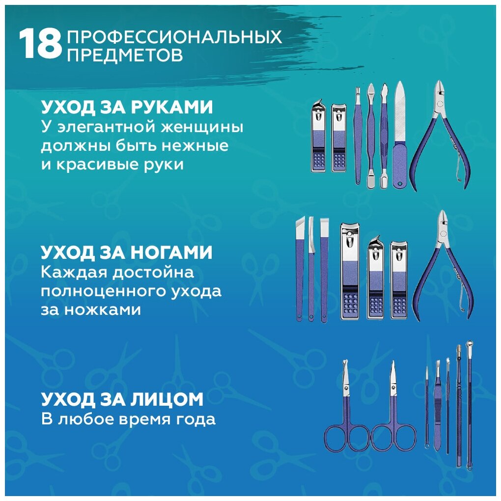 Маникюрный набор из 18 инструментов, профессиональный набор инструментов для маникюра и педикюра, синий, Universal-Salet информация: