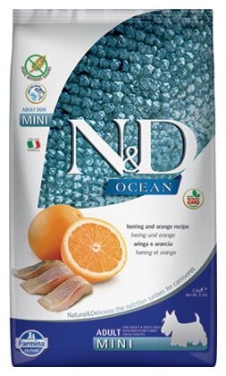 10 цен на FARMINA Сухой беззерновой корм для собак мелких пород OCEAN LINE сельдь с апельсином 11222 0,8 кг 38902 (2 шт)