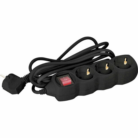 Отзывы на Удлинитель сетевой SONNEN U-133GS, комплект 5 шт., 3 розетки, c заземлением, выключатель, 10 А, 3 м, черный, 513266