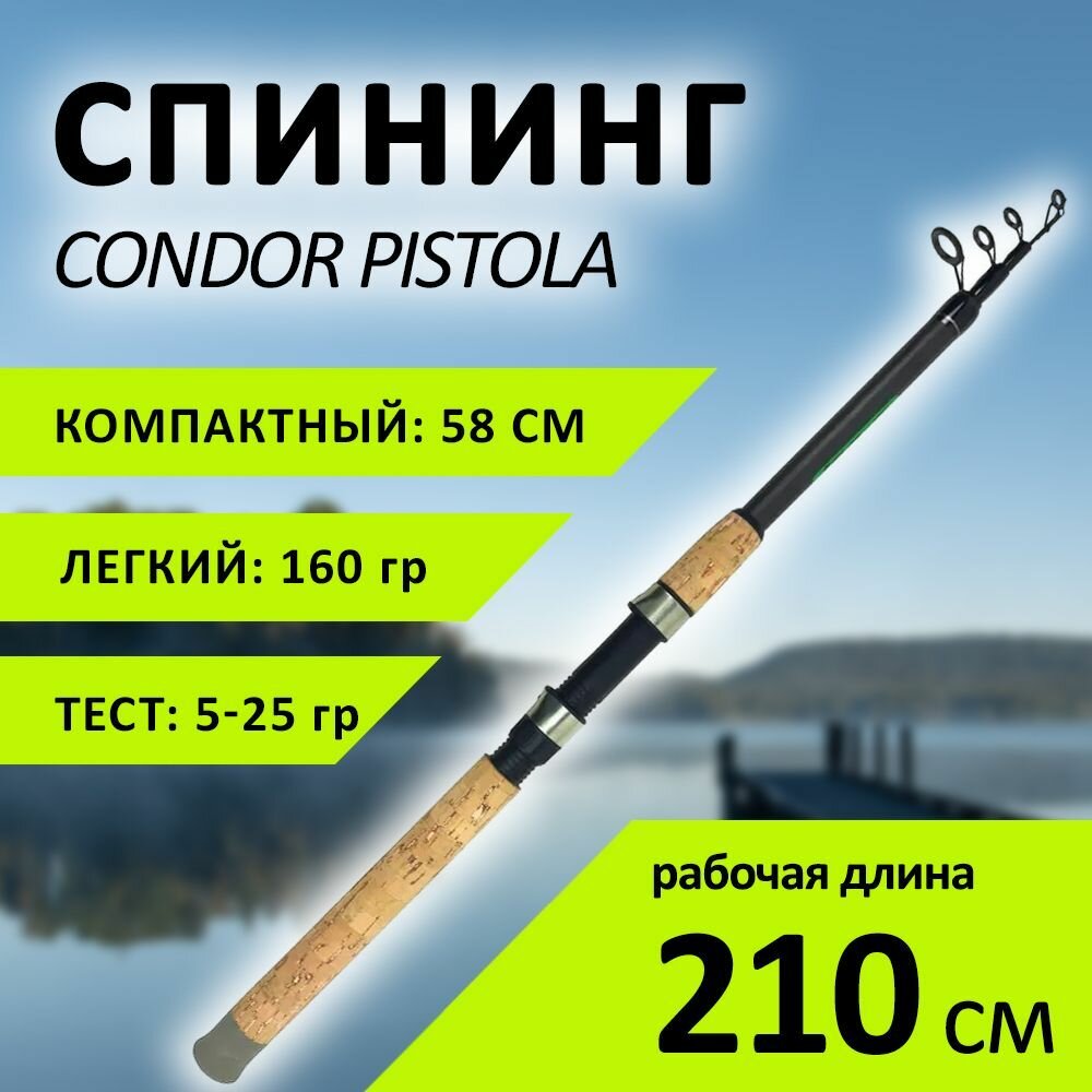 Спиннинг Condor Pistola длина 2.10 м, тест 5-25 гр, стеклопластик, телескопический информация: