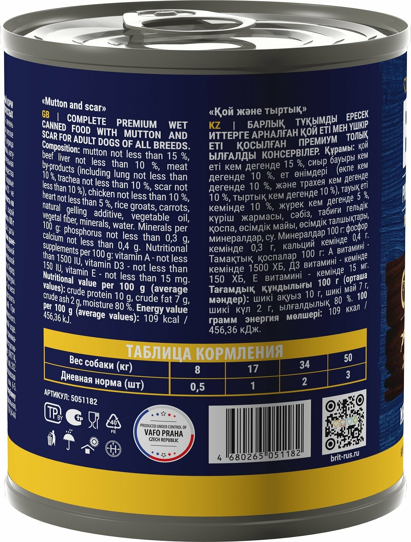Консервы Brit Premium для собак всех пород Баранина и Рубец 850г