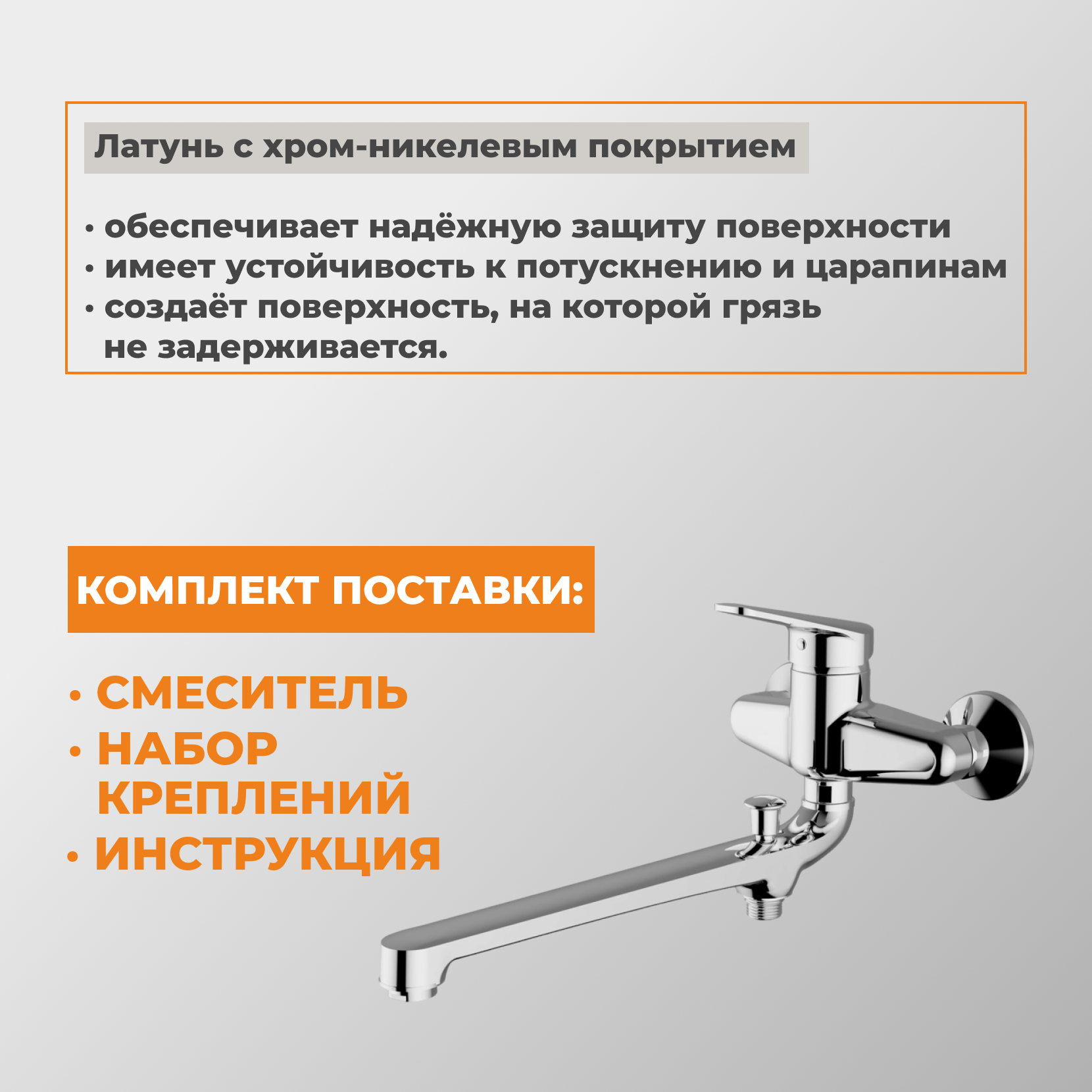 Смеситель на раковину настенный Эверест B46-350 с круглым поворотным изливом, кран-буксы 1/2", хром