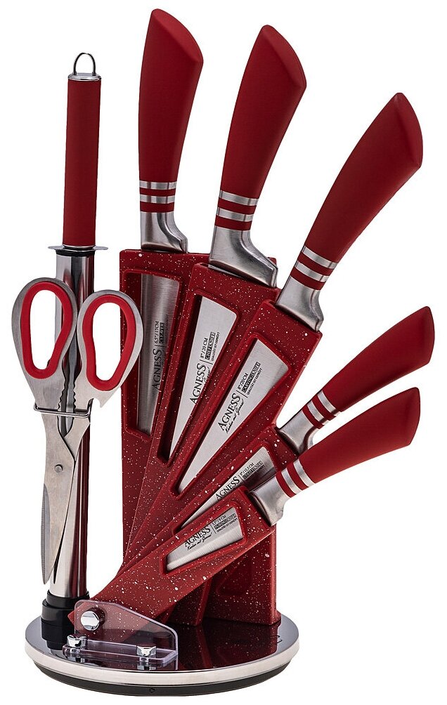Отзывы на Набор Ножей Agness С Ножницами И Мусатом на Пластиковой Подставке 8 Предметов 911-621 .