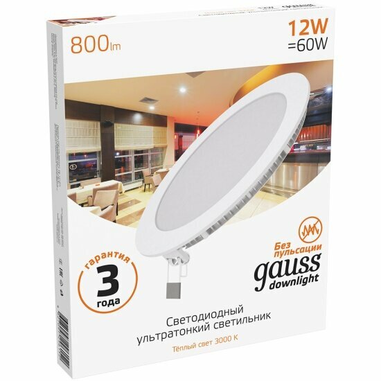 Отзывы на Встраиваемый светильник Gauss ультратонкий круглый IP20 12W,170х22, 155, 3000K 880лм 1/20