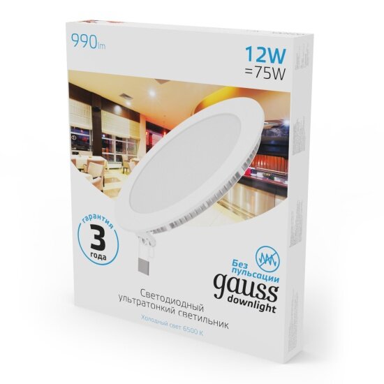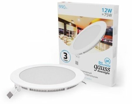 Отзывы на Встраиваемый светильник Gauss ультратонкий круглый IP20 12W,170х22, 155, 6500K 990лм 1/20