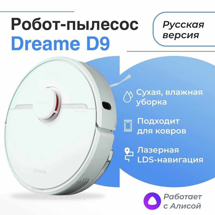 Робот пылесос с влажной и сухой уборкой Dreame D9 Ru-версия,Алиса,мощность 40 вт/3000 па, аккумулятор 5200, 150 мин, пылесборник 570 мл, информация: