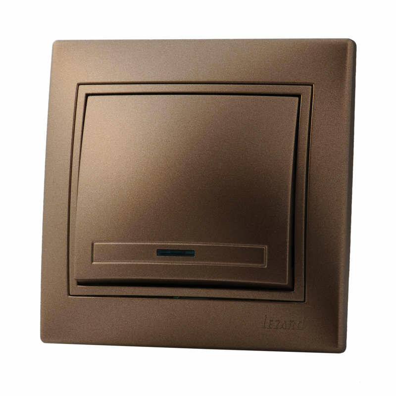 Выключатель 1-кл. СП Мира 10А IP20 с подсветкой со вставкой свет. корич. перламутр LEZARD 701-3131-111 (4шт.в упак.) информация: