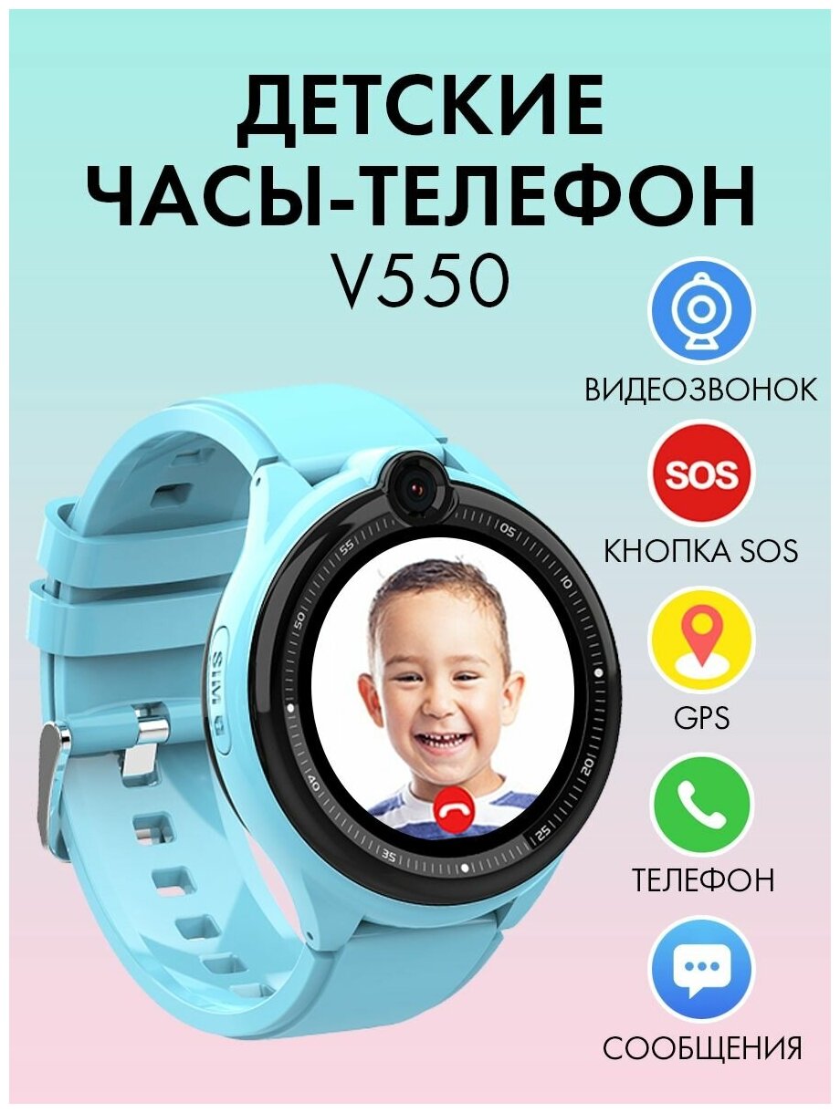 Детские наручные смарт часы с GPS и телефоном 4G Smart Baby Watch V550, электронные умные часы с сим картой для девочки и для мальчика с видеозвонком информация: