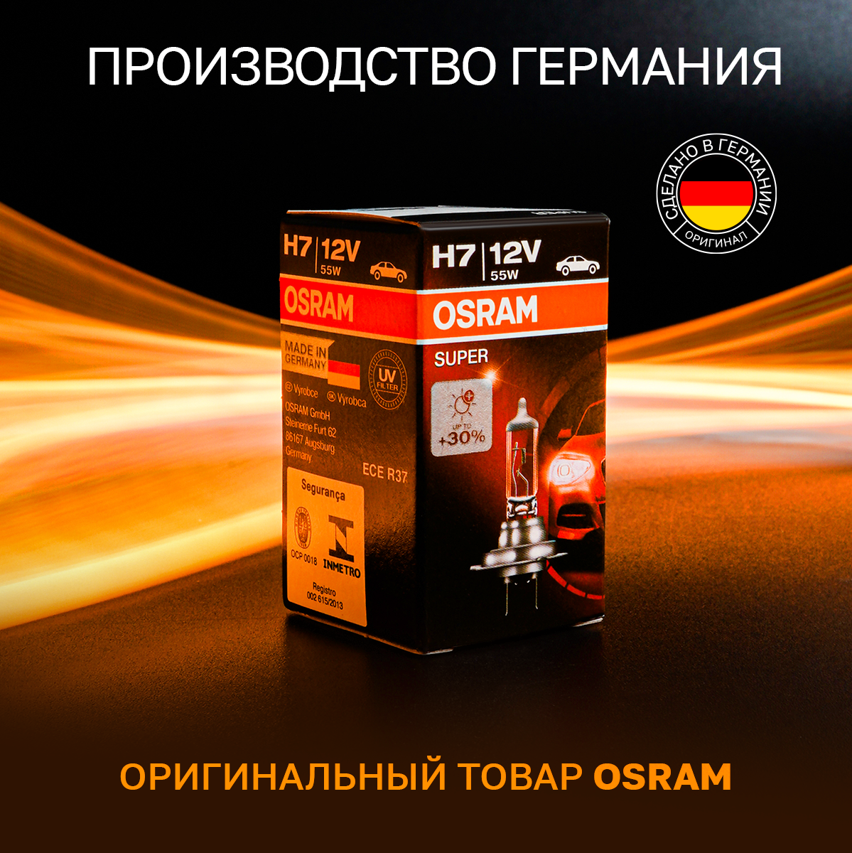 10 цен на Лампа галогеновая автомобильная H7 OSRAM SUPER 12В 55Вт на 30% больше света Для ближнего и дальнего света 2 шт