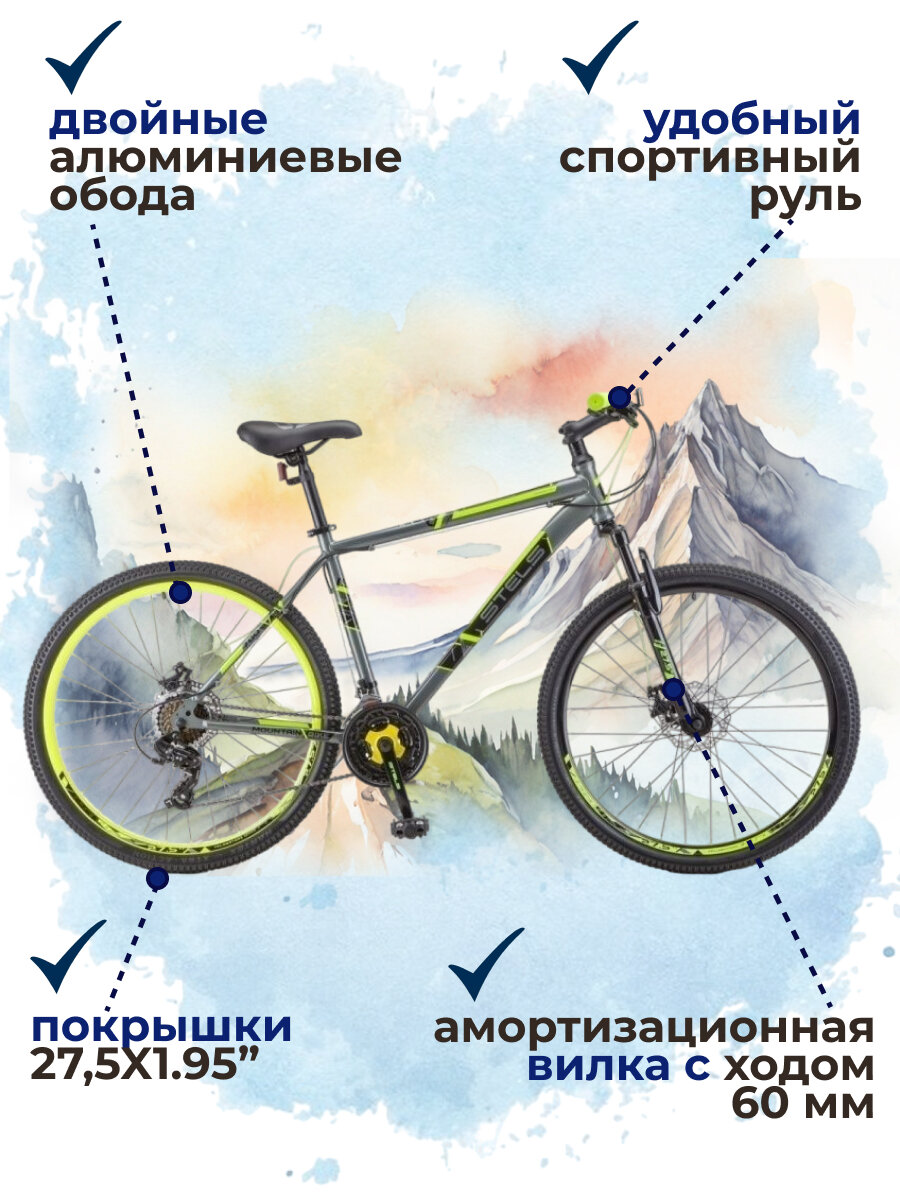 Отзывы на Велосипед горный Stels Navigator 700 MD F020 рама 21" серо-жёлтый колеса 27.5" LU096006