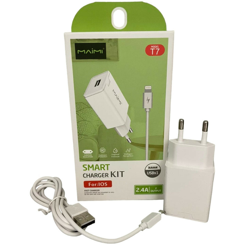 Сетевое зарядное устройство Maimi T7 USB 2.4 A с кабелем lightning 1 м информация: