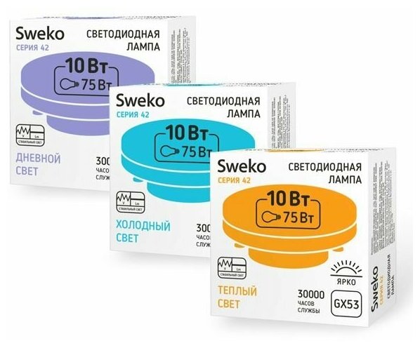 Светодиодная лампа Sweko 42LED-GX53-10W-230-6500K-GX53 информация: