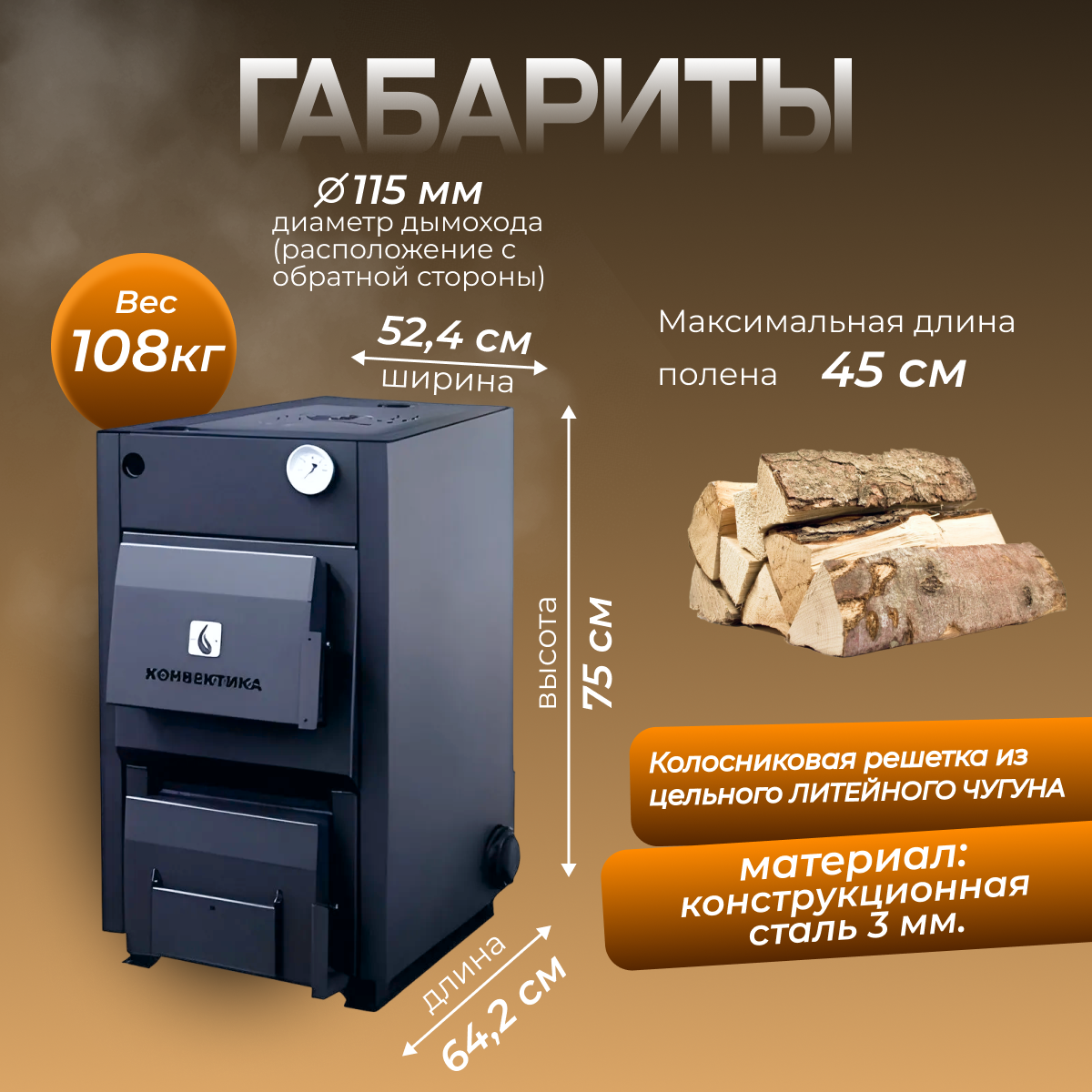 | Топливо | дрова / уголь |