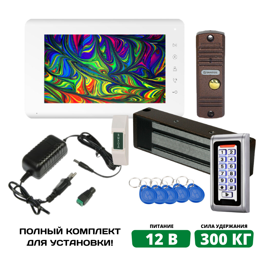 Комплект видеодомофона для дома Tantos 7" с электромагнитным замком (Белый) для дома/офиса