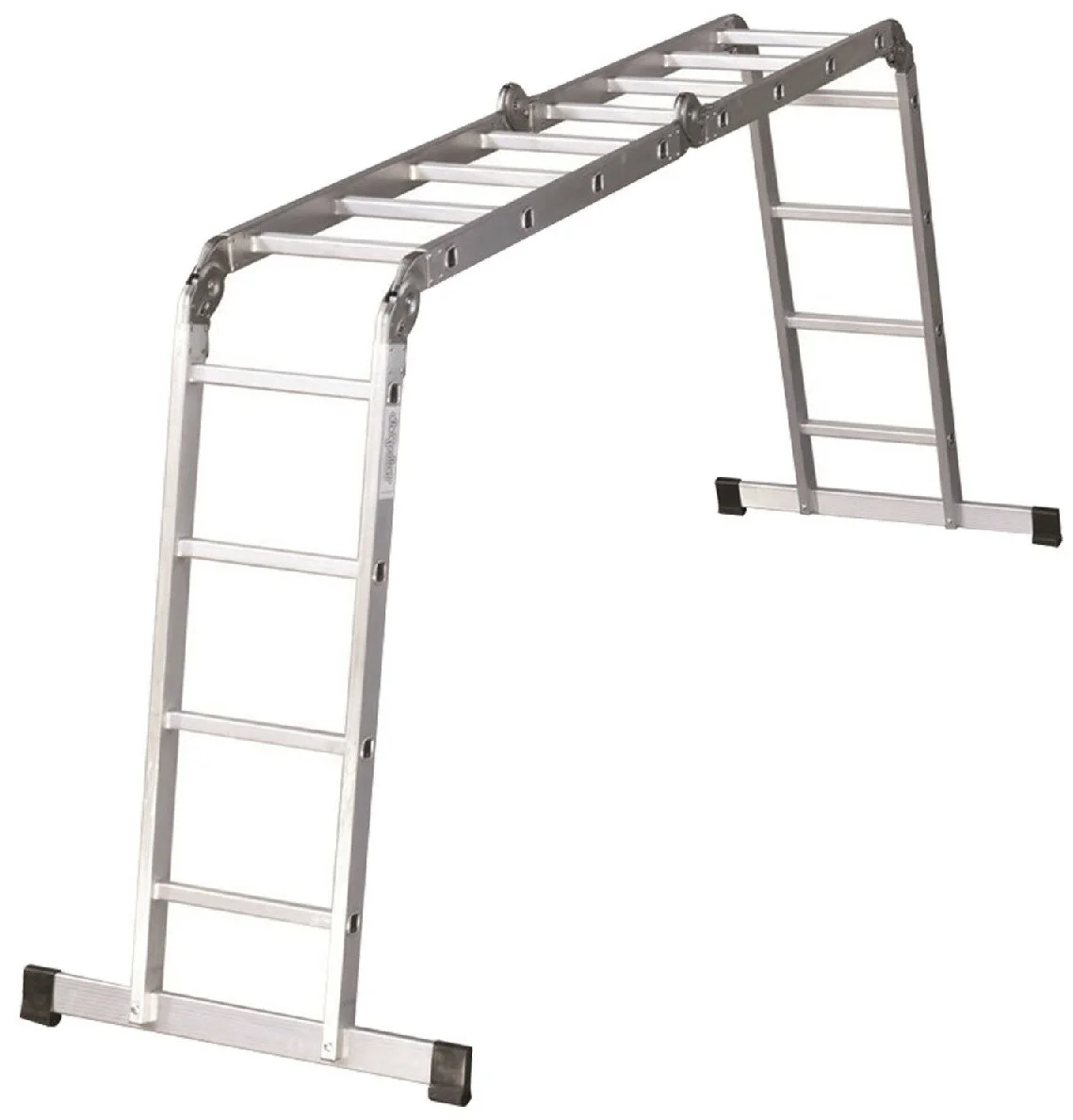 Лестница-трансформер алюминиевая 4х4 ступеней, высота 4,5 м (4 секции по 1,27 м), нагрузка 150 кг, вес 12,9 кг, 511444