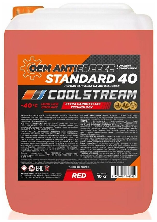Антифриз CoolStream 10 л (красн.) Standart CS010203RD информация: