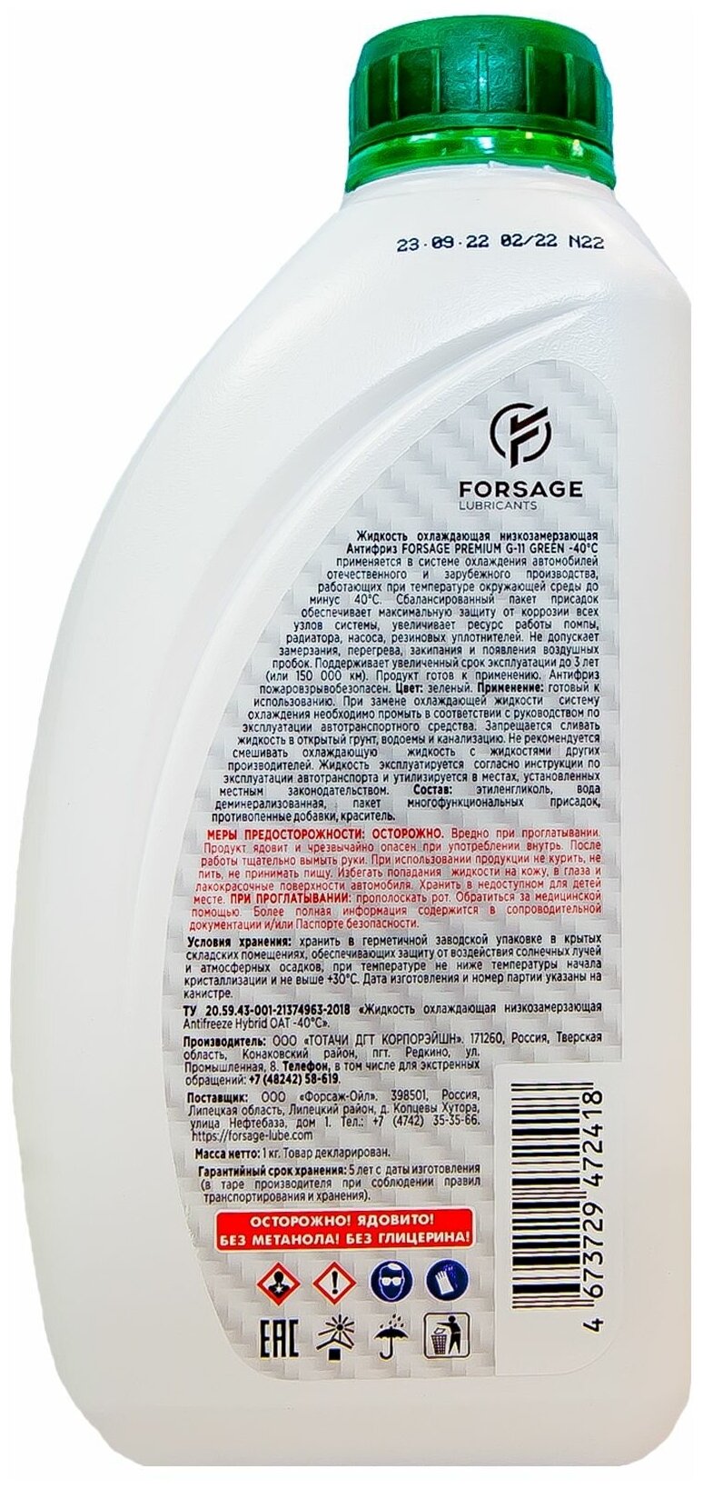 Антифриз Forsage PREMIUM G-11 GREEN 1кг информация: