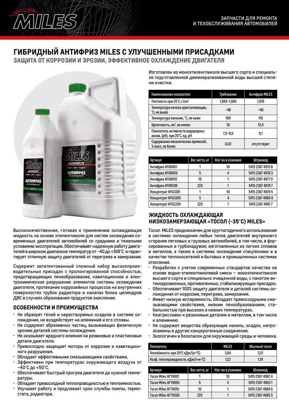 Антифриз Готов К Применению G11 (Зеленый) 1кг (Super Long Life Coolant -40c) Afgr001 Miles арт. AFGR001