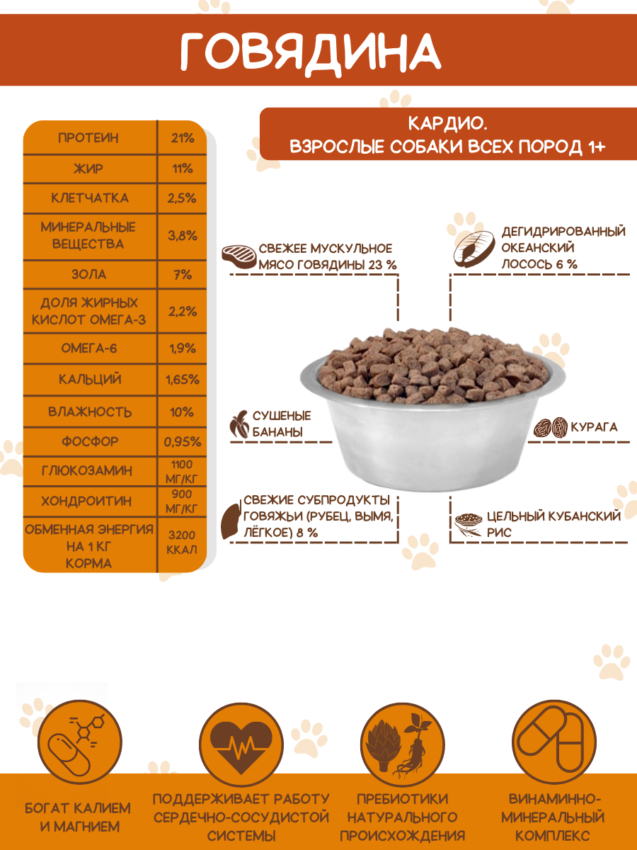 Живая Сила Будь Здоров сухой корм с говядиной для взрослых собак всех пород. Кардио. Крупная гранула 2,5 кг