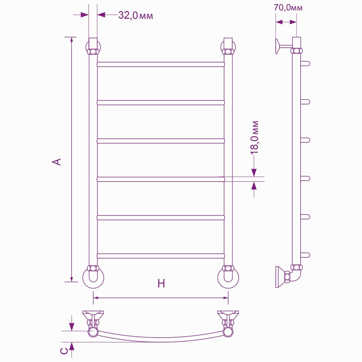 Полотенцесушитель ZOX ЛЦ 60х40 1'' 4 перекл дуга нижнее подкл (крепеж, без монт комп) В4 информация: