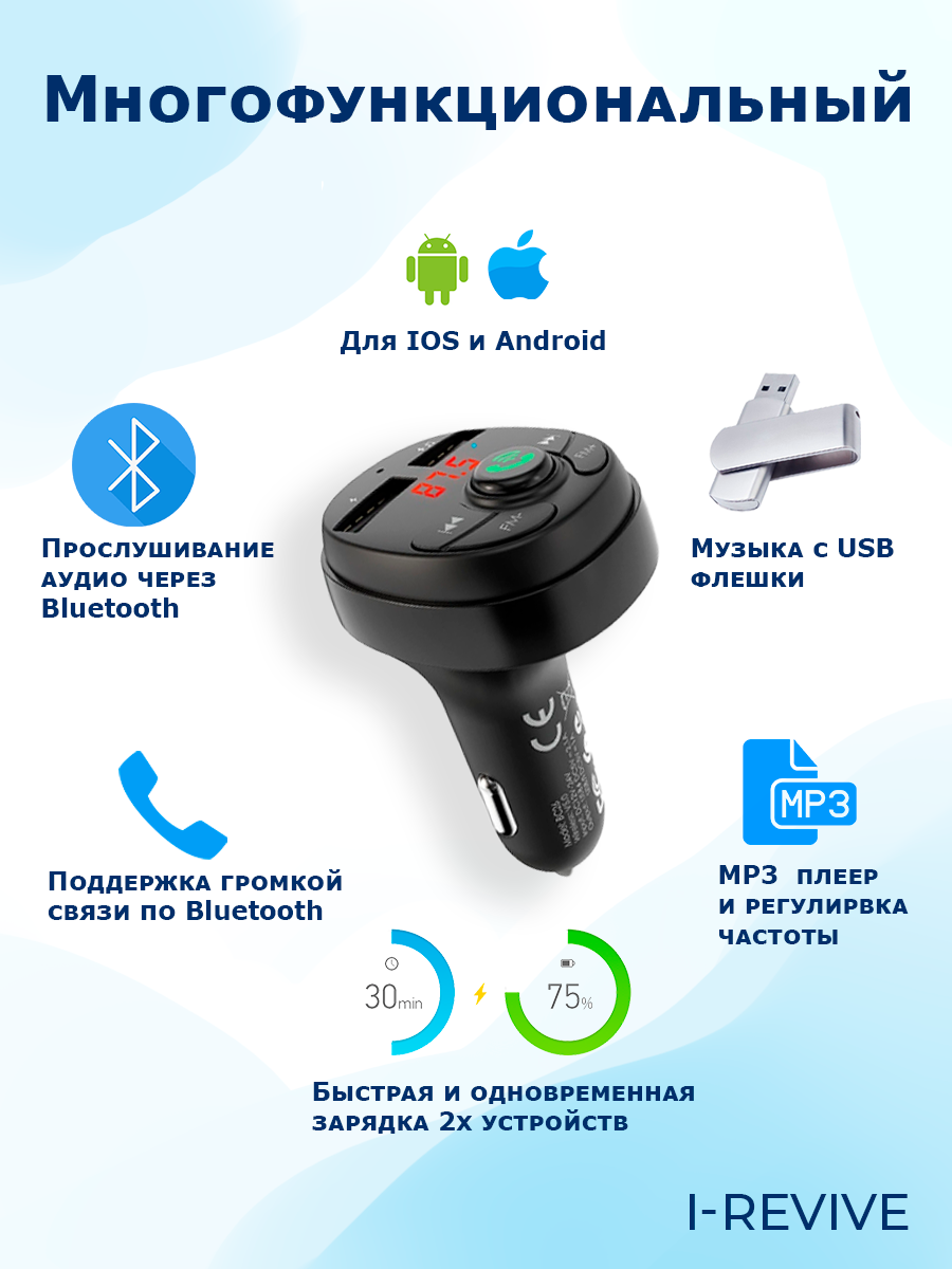 Мы выбрали 10 лучших цен на Fm-трансмиттер Bluetooth,фм-модулятор, автомобильное зарядное устройство, в машину, для авто. Перед тем как купить Fm-трансмиттер Bluetooth,фм-модулятор, автомобильное зарядное устройство, в машину, для авто посмотрите найденные предложения из Яндекс Маркета и других сайтов на основе XML фидов.