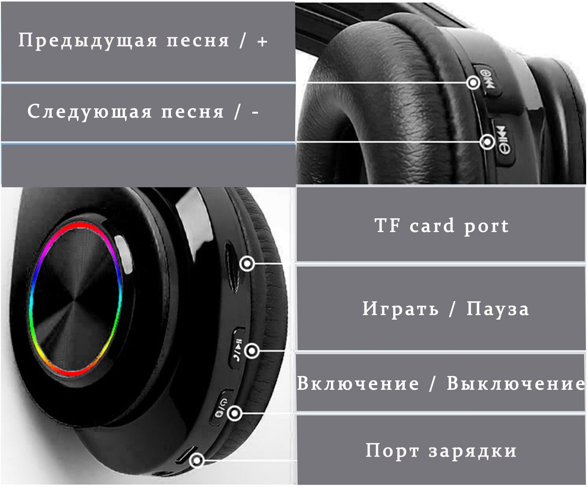 Наушники беспроводные с подсветкой B39 (TF-CARD), Чёрный. информация: