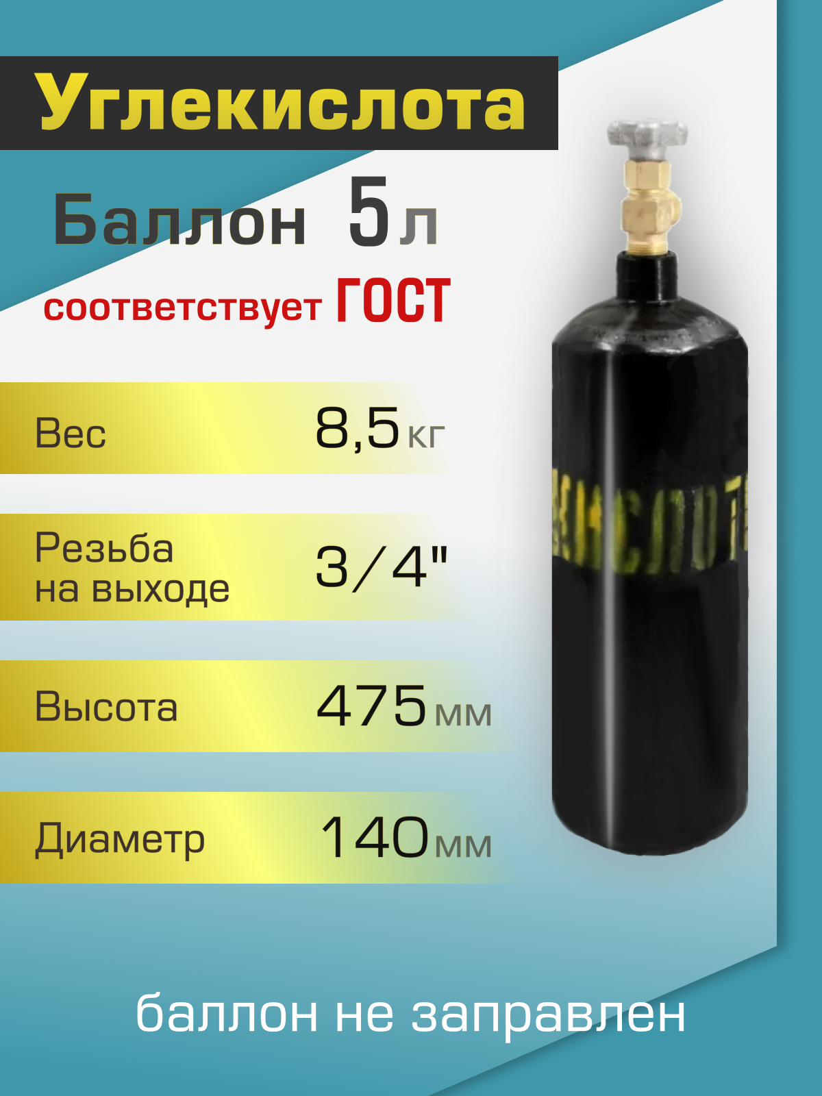 Баллон газовый ТГС для углекислоты 5 л информация: