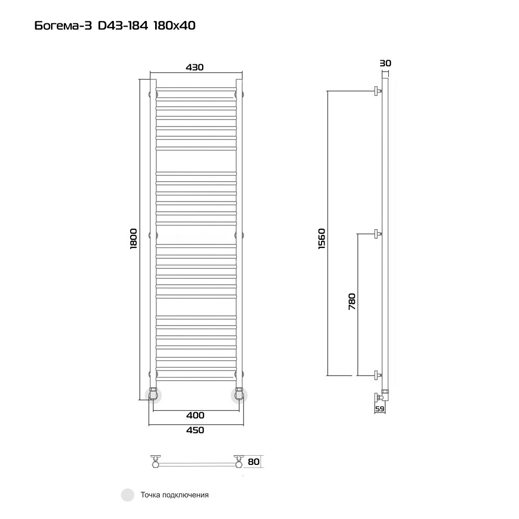 Богема-3 180х40 Водяной полотенцесушитель D43-184 информация: