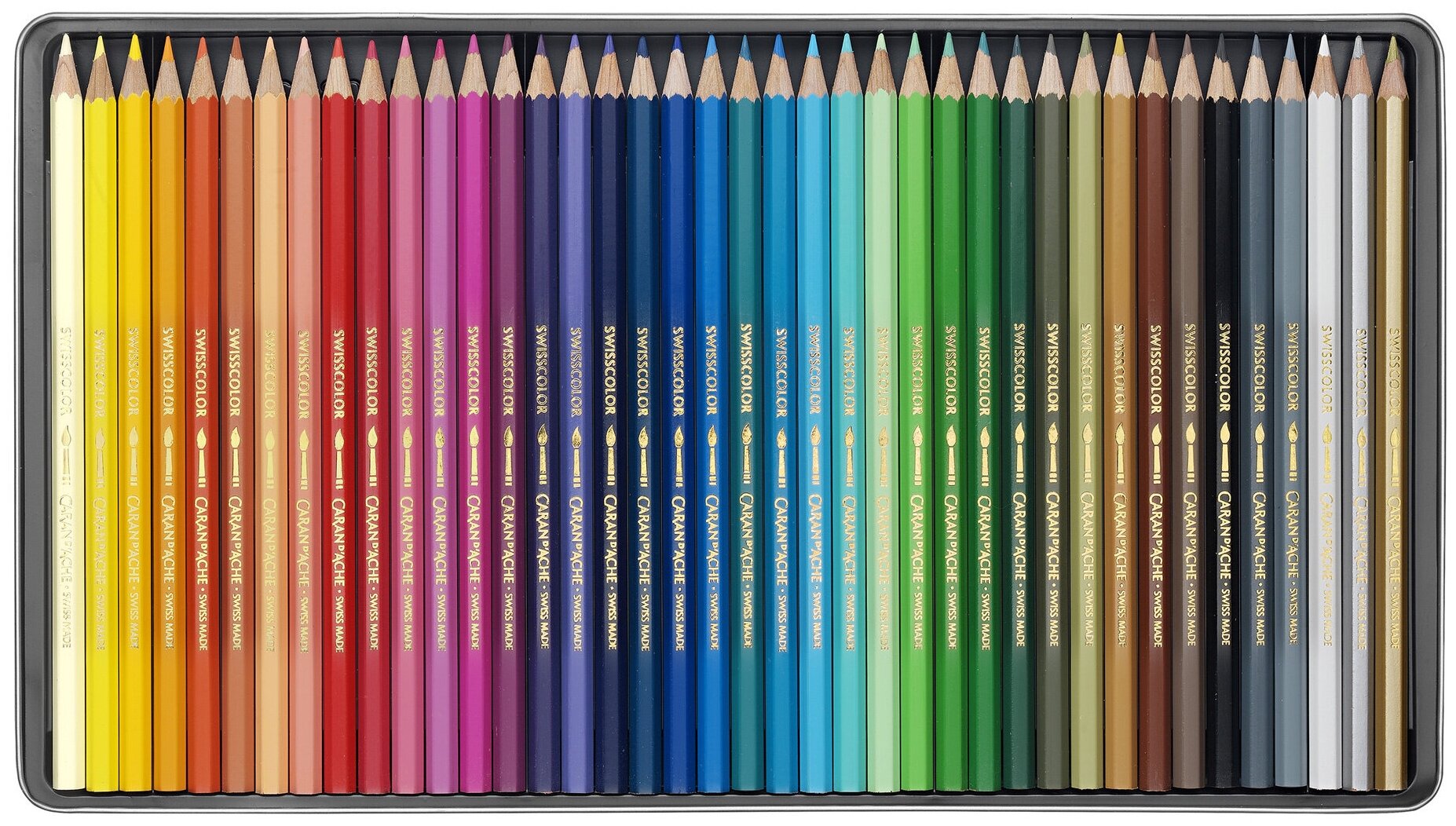 10 цен на Карандаши цветные Carandache 1285.740 Swisscolor акварельные шестигранный дерево металлическая коробка (40 штук)
