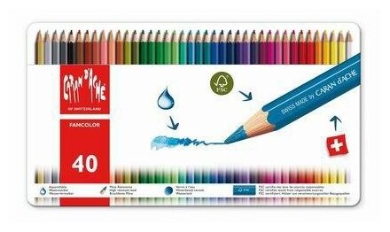 10 цен на Карандаши цветные Carandache 1288.340 Fancolor акварельные шестигранный дерево металлическая коробка (40 штук)