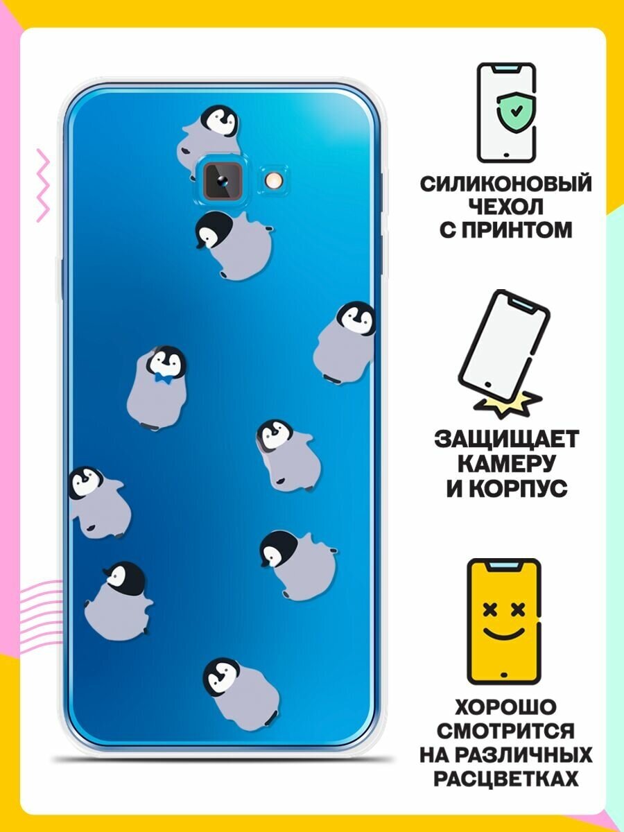 Силиконовый чехол на Samsung Galaxy J4+ Серые пингвины / для Самсунг Галакси Джей 4 Плюс 2018 информация: